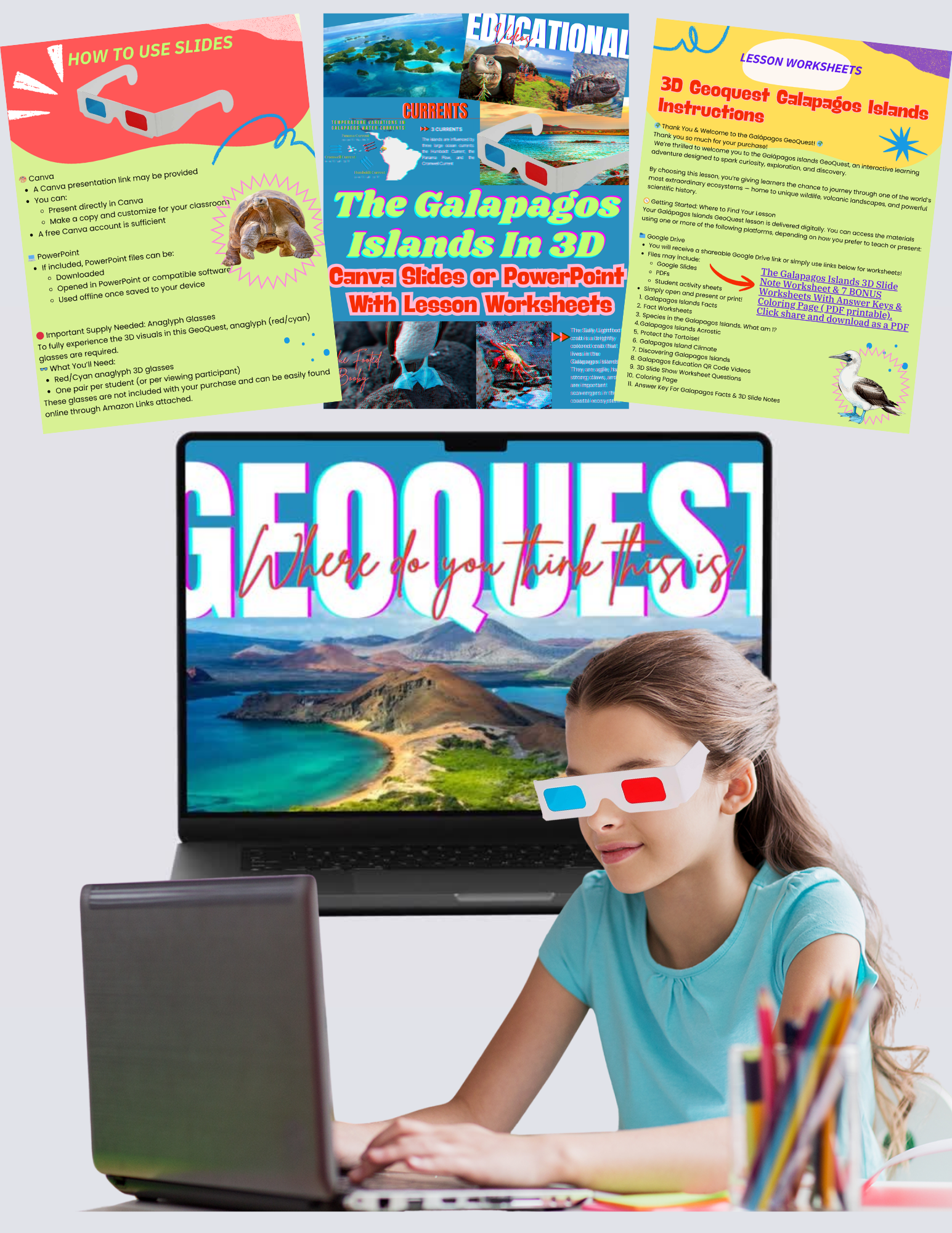 Package includes 3D Slides and a total of 9 lessons with prepared worksheets and answer key. Let's get exploring!